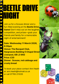 Our Beetle Drive is being held at The Racquet Club in Liverpool on Wednesday 11 March from 6pm.